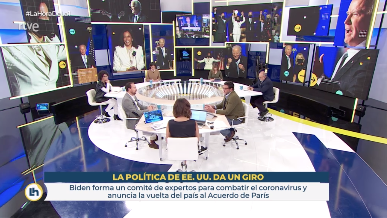 La hora de La 1 is a Spanish breakfast television news program, broadcast on weekdays on La 1 of Televisión Española from September 7, 2020.. Format. La hora de La 1 is a magazine show broadcast live from Prado del Rey Studio 1, which addresses the daily news with content, organized by time slots, ranging from interviews and political debates to the social chronicle, through segments.
